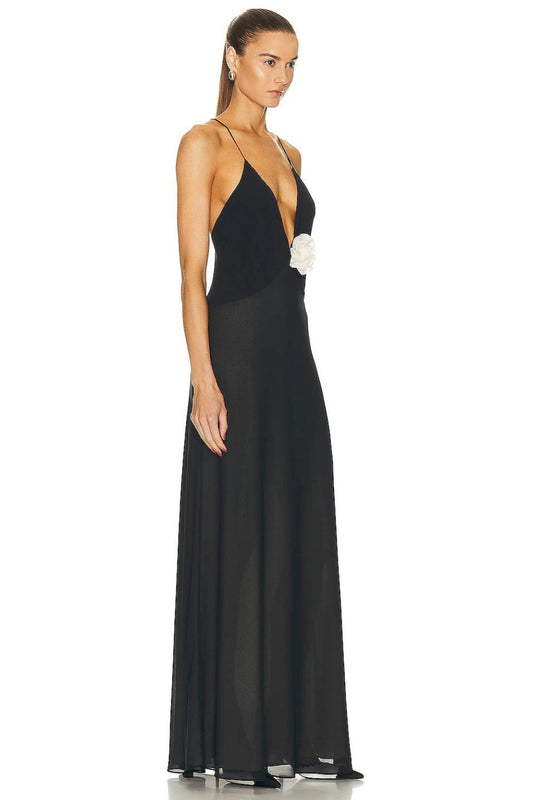 Helsa | Sheer Deep V Long Slip Dress | Black