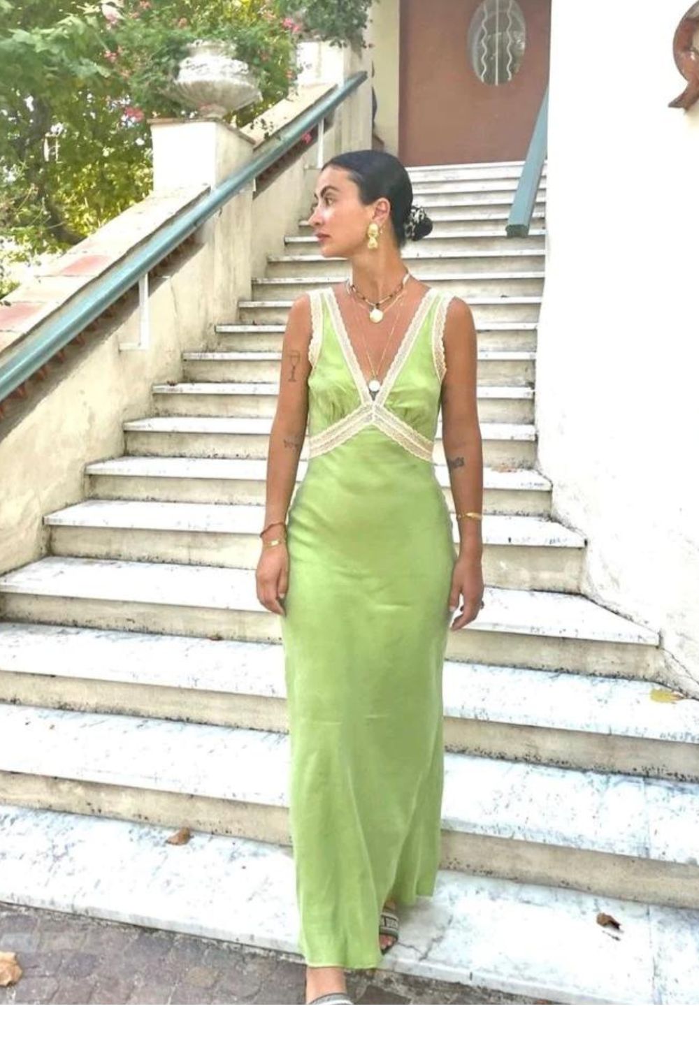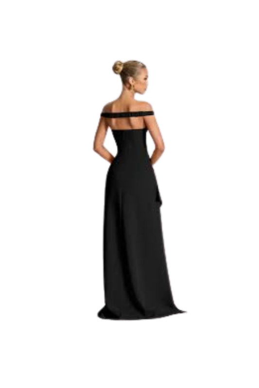 Helsa | Sheer Deep V Long Slip Dress | Black