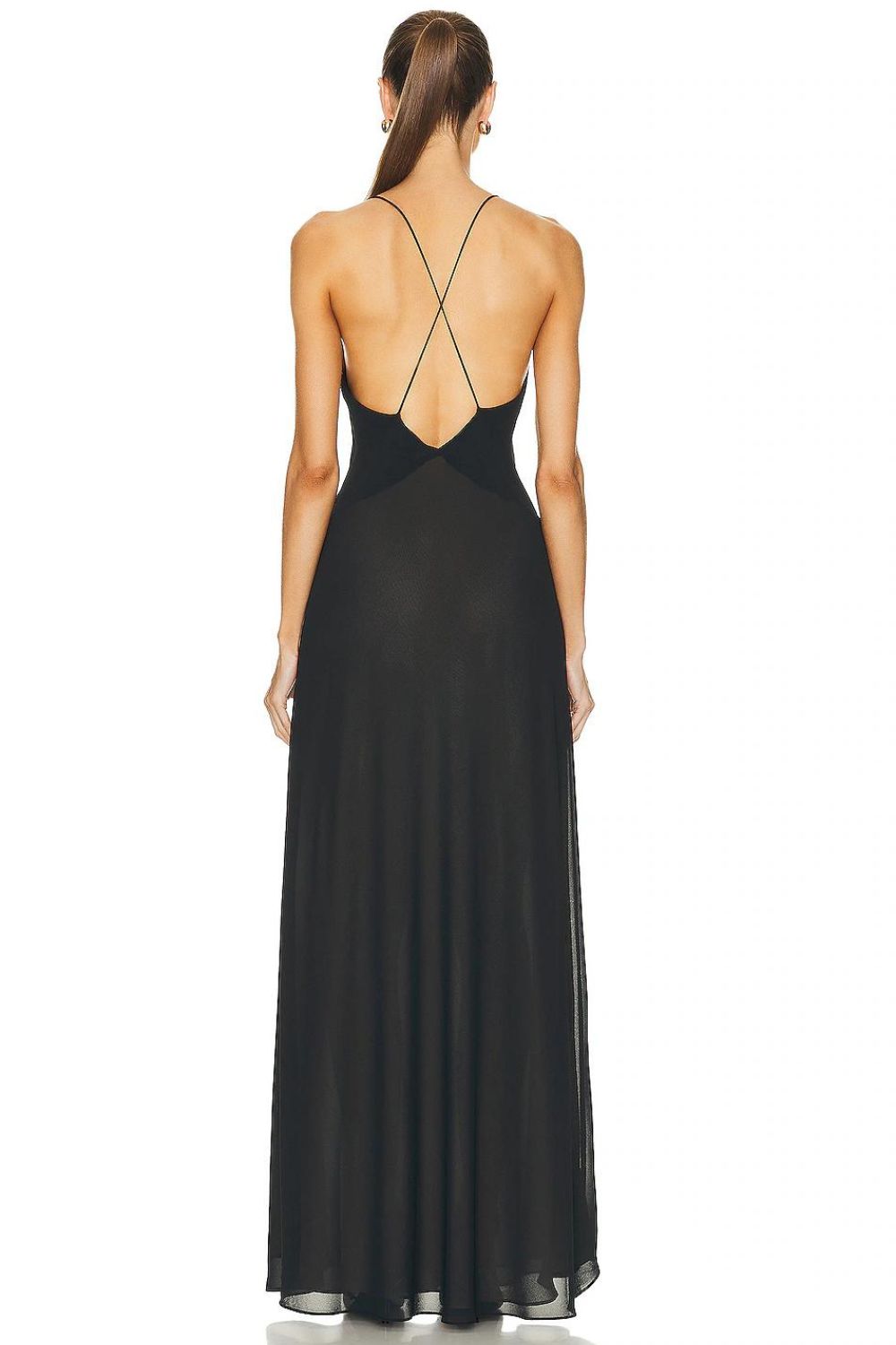 Helsa | Sheer Deep V Long Slip Dress | Black