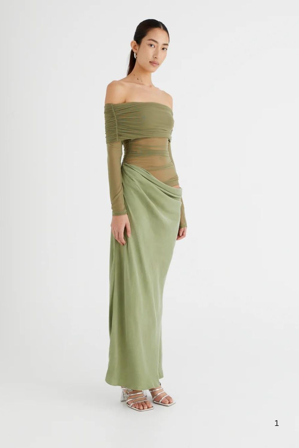 Bennii The Label | Yasmin Off The Shoulder Maxi Dress | Pistachio