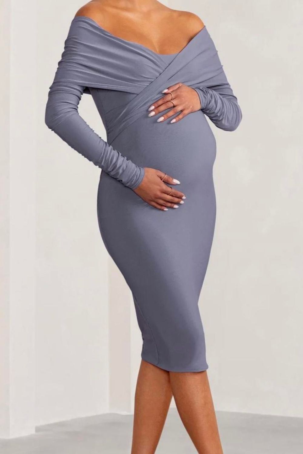 Add sophistication to your maternity wardrobe with this stunning mid-length gown, babe. Designed to contour your curves, the "Little Star" maternity midi dress is the gown you need to show off your gorgeous bump, babe.