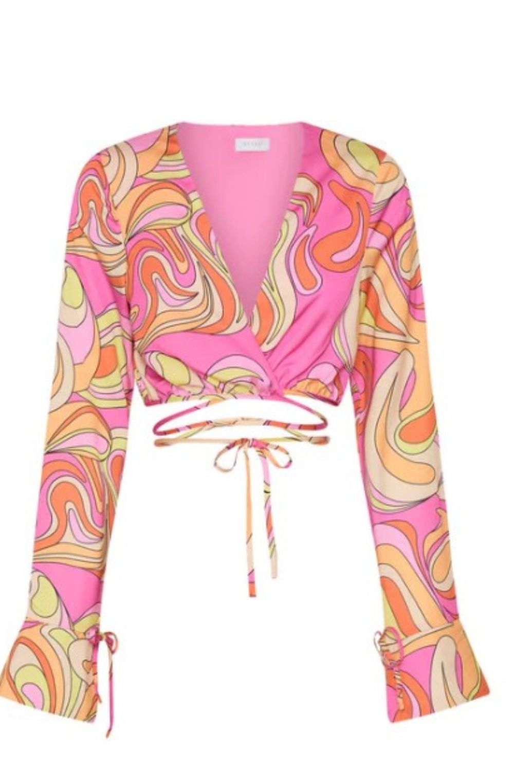 Meshki | Rheanna Wrap Around Cropped Shirt | Psychedelic Print