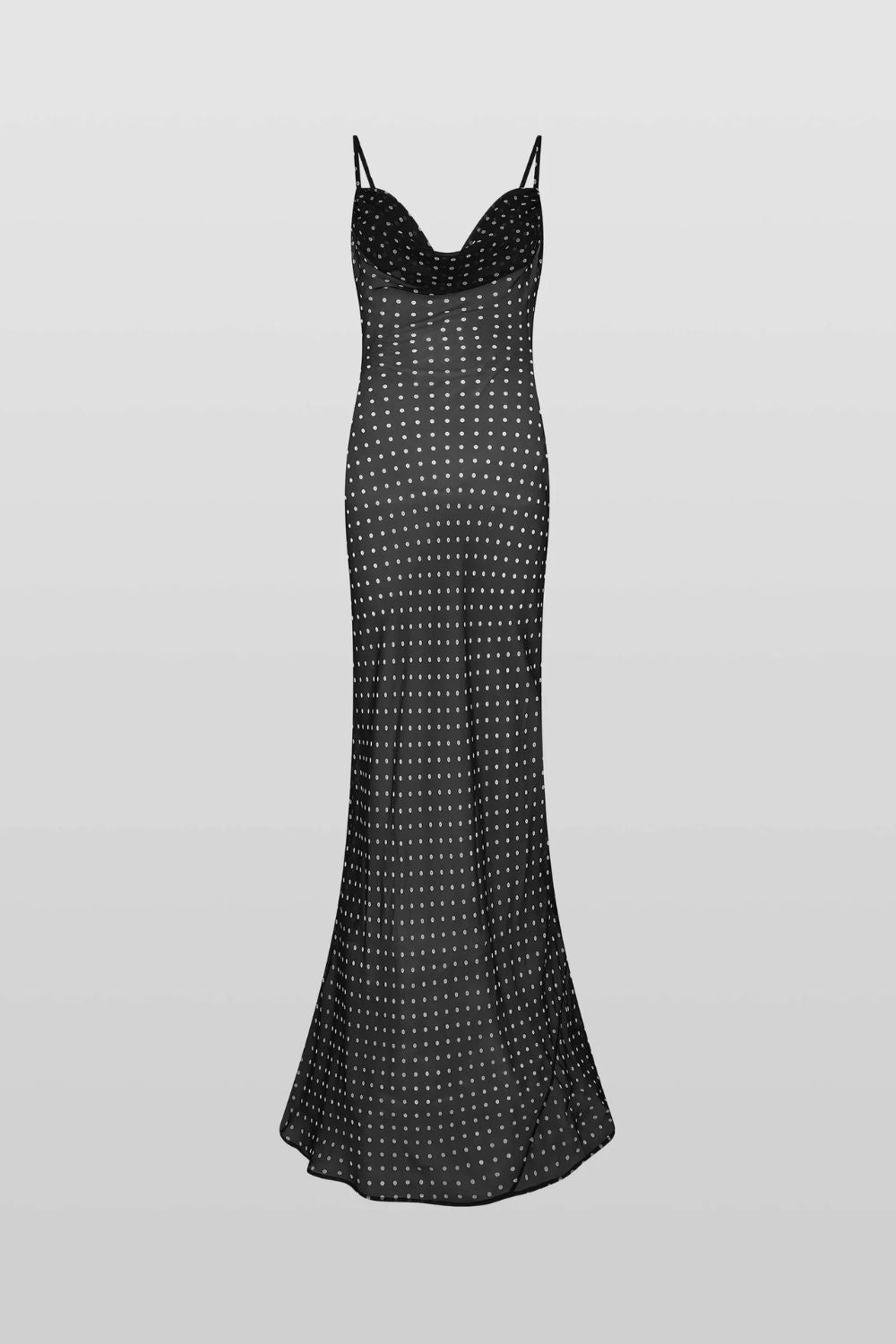A sexy siren of a dress, Gisele is a 90s-inspired slip crafted from sheer, polka dot silk. Cut with an ultra-flattering, figure-skimming silhouette, she has our signature cowl neck and an open back.